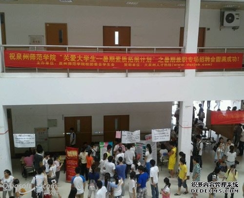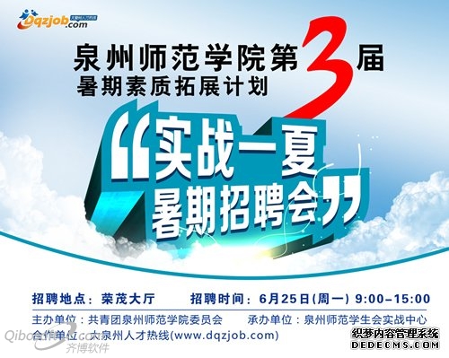 在6月初的时候,泉州师范学院那边联系我们,说他们想开一场实战一夏招聘,问我们可否给他们赞助企业会员,和宣传费,我觉得有点意向,必定我的站运营时间也不太长,需要推广和打开知名度,最后就进行了进一步的详谈,最终决定,我将大泉州人才热线的所有企业联系方式等联系人,列表出来供他们联系,然后我们提供他们的海报宣传费用,和条幅,拱门和提供简历等费用。