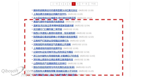 对于按发布时间有序排布在索引页系列的资源链接,如何保证新发布的资源都被收录呢?如上述所说,在18个小时后,图1中的资源链接已经往后有序推移到翻页第4页了,如此看,这段时间内新增了翻页第2,3,4页索引的资源链接,那么,spider就需要完全的收录这些新增的资源;首先,当spider抓取18小时后的第1页时,将新发现的资源链接集合,与上一次18小时前第1页索引页调度记录的资源链接集合作比较,会发现两次调度发现的资源链接没有交集,所以就可能存在漏链。进而需要继续发起第2页的调度,第2页发现的资源链接集合与之仍然没有交集,所以还可能存在漏链,继续发起第3页,第4页的调度,最终如图2所示,红框中的链接与上一次索引页调度记录的资源链接有交集,因此可以断定已经补全了这段时间内新增的资源,从而结束翻页系列的调度,并保证了该翻页系列的所有链接的补全,从而提升搜索产品的收录效果。