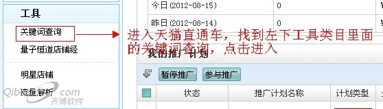 3.进入直通车后台的关键词搜索功能,然后在搜索框,输入需要查询的关键字。例如18k白金项链。