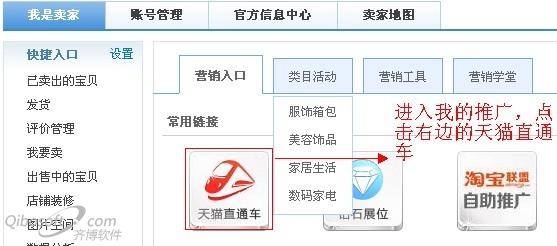 2.进入店铺后台后,点击我是卖家,进入店铺后台后,找到营销中心的我要推广,点击进入。