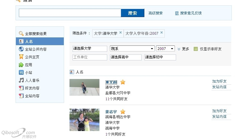 2、在站内搜索,我们可以在站内按照地区、学校、年龄、性别等搜索好友,比如我们要找IT行业的可以找一些出名院校的计算机专业,如下图他首先给你推荐的跟你同一个城市的,毕竟是老乡,这样加好友的成功率也很大。大家都在外面学习拼搏,看到家乡人总有一种亲切感。