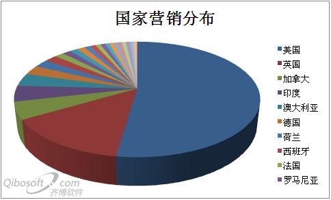 从图表内容中我们可以看出中国的营销比例很微小。