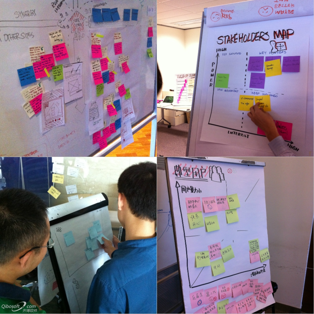 这些自定义的坐标图帮助引导大家对头脑风暴的结果做归类,并通过评估结果快速达成一致,不单单是设计活动,很多项目管理的时候也可以使用这个方法。