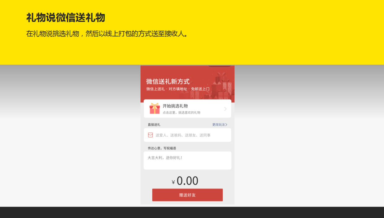 2)又比如礼物说的“新型送礼物”方式:在礼物说挑选礼物,然后以线上打包的方式送至接收人。
