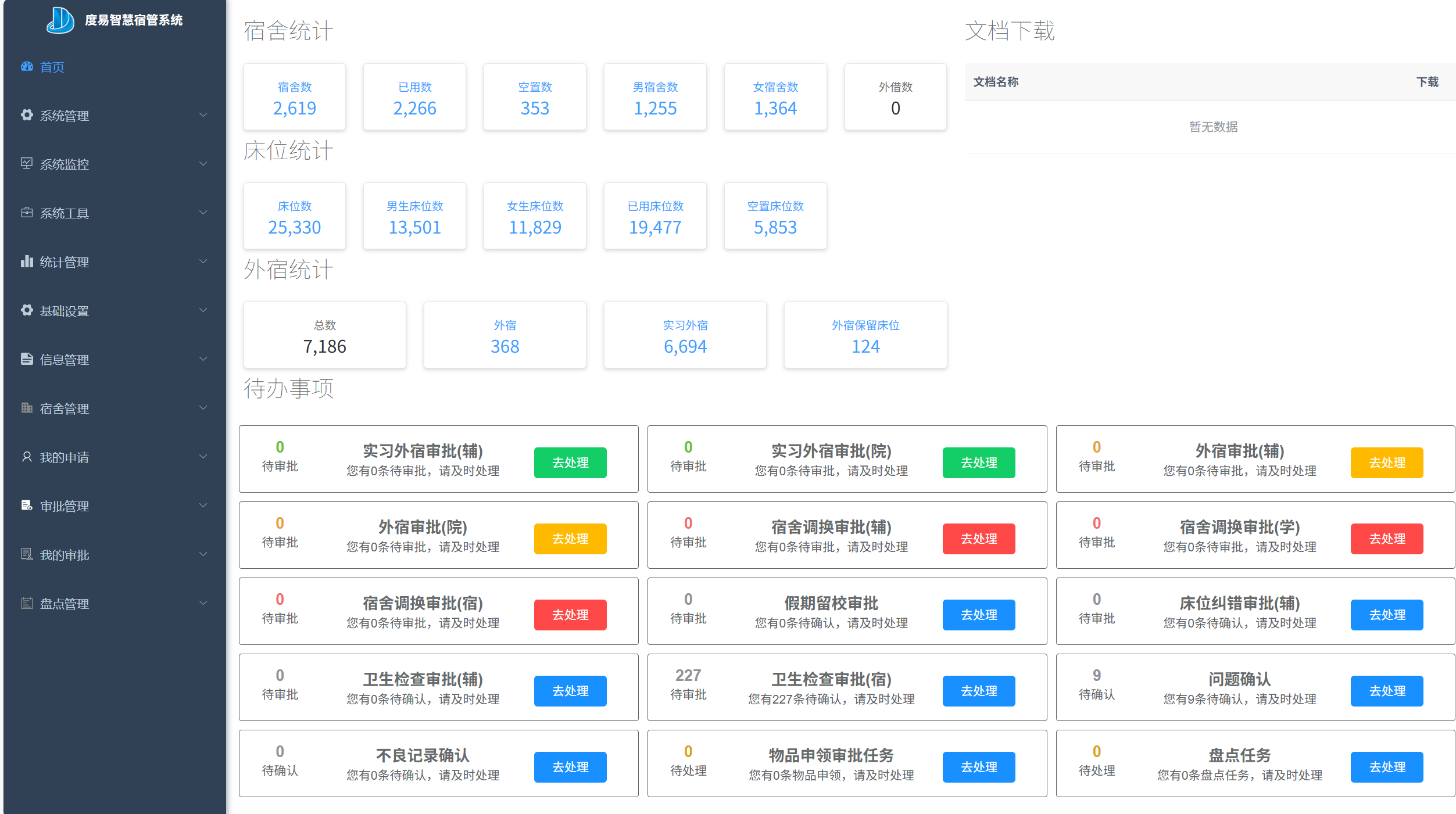 批量操作:新生批量入住、毕业生批量退宿、数据批量导入导出。